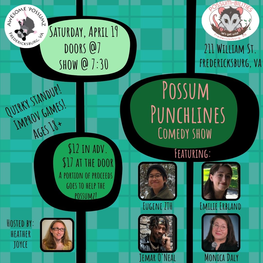 Come out to second floor of your favorite possum-themed gift shop for a night of alternative comedy. You’ll see quirky comics from across the DMV performing stand-up comedy and improv games. And a portion of proceeds goes to help the possumz! Bring a date or a friend for a night of laughs! Recommended ages 18+